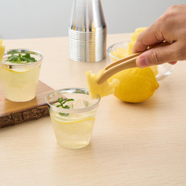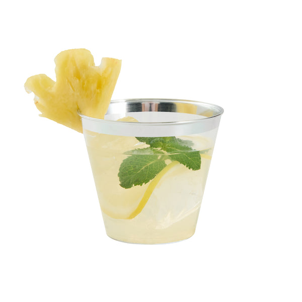 Present your drinks in style with our Chef 101 5-ounce Clear Plastic Tumblers. These versatile PS plastic glasses are designed with a silver rim that complements any party theme, from elegant to casual. Conveniently disposable, these party glasses offer sustainability with ease. With their cold food-friendly design, these elegant party cups enhance event presentations while maintaining durability and class. Additionally, the recyclable feature of these clear glasses supports sustainable practices, aligning with eco-conscious initiatives. Suitable for weddings, birthdays, parties, and more, these disposable glasses will elevate your service and presentation. Measuring 2.8 inches in diameter and 2.3 inches in height, these 5-ounce cocktail glasses are crafted from high-quality plastic, ensuring ease of handling. Sold in a 20 count box.