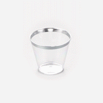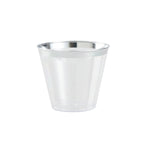 5 OZ CLEAR PLASTIC TUMBLER - WITH SILVER RIM