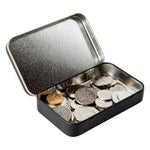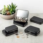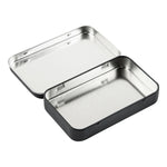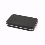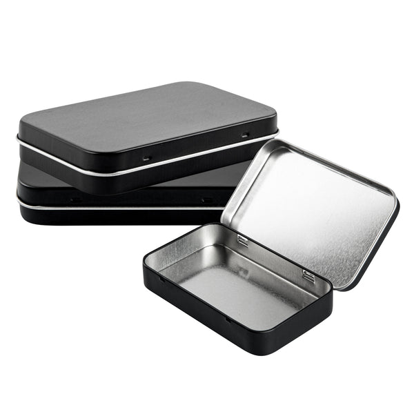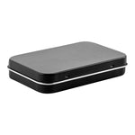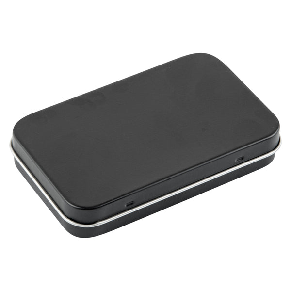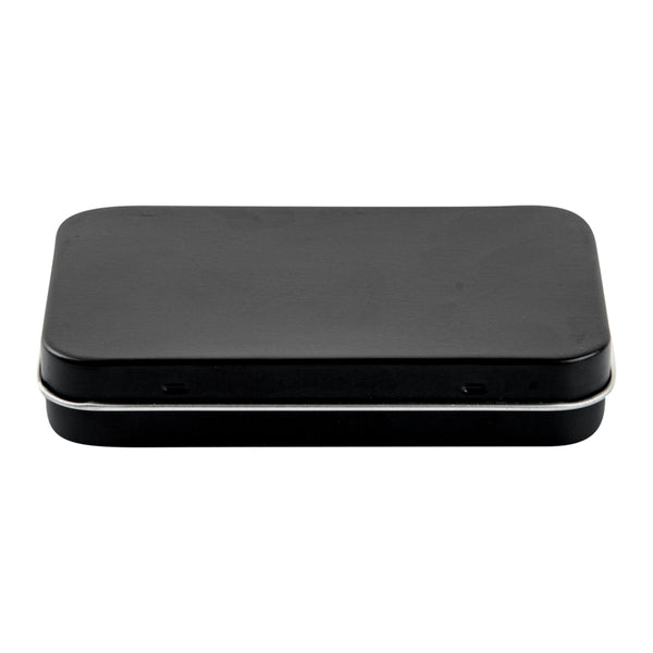 6 OZ RECTANGLE BLACK TIN CONTAINER - WITH HINGED LID