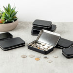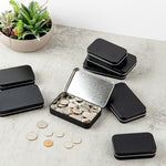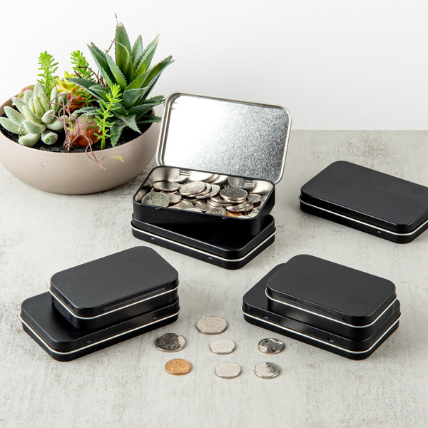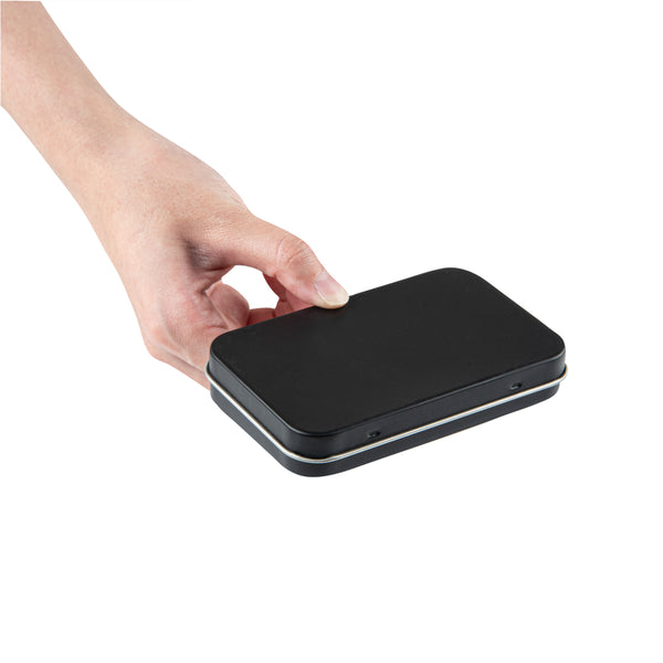 Carry your medicines using our Chef 101 6-ounce Rectangle Black Tin Containers. Made of durable tinplate material, these metal storage boxes are sturdy and do not bend or break. To avoid dropping or misplacing the lids, these tin storage containers come with hinged lids that fit perfectly to avoid leakage or spills of the contents inside during transit. The edges of these rectangular tin storage boxes with lids are rounded and provide a smooth and comfortable hold. With a sleek and compact design, these metal storage containers with lids are lightweight and easy to carry in your bags during travel. The plain surface of these tin boxes with hinged lids comes with a classy black shade that allows you to label them for identification or customize them according to your style. These rectangular containers for storage measure 4.5 inches in length by 2.75 inches in width each and holds up to 6 ounces. Sold in a 10 count box.