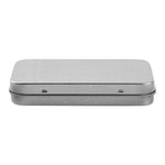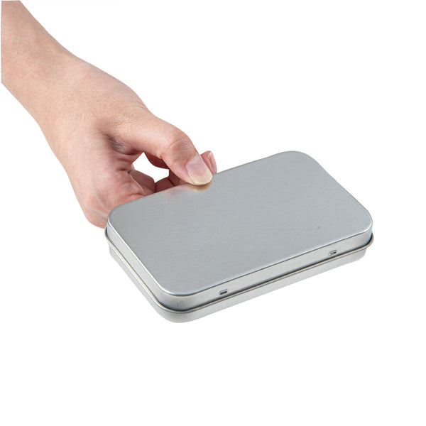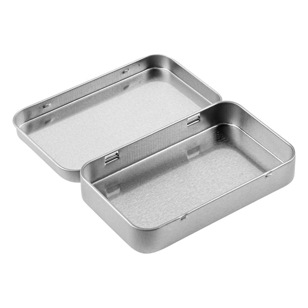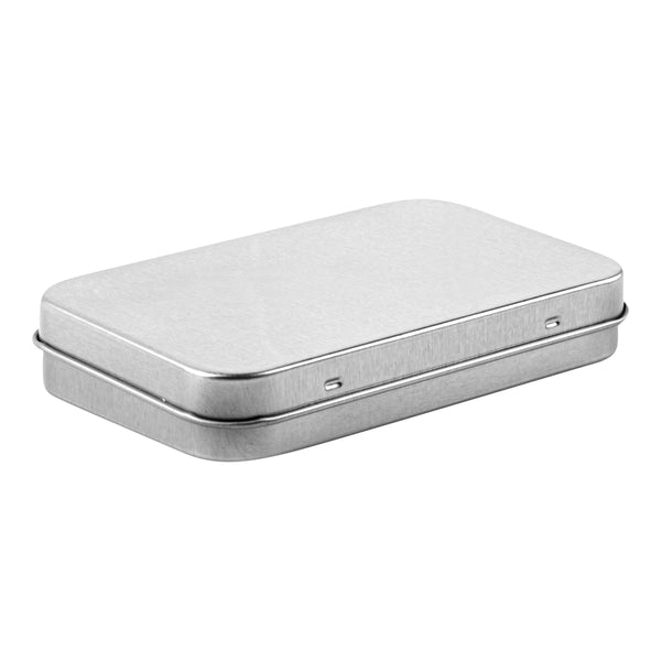 6 OZ RECTANGLE SILVER TIN CONTAINER - WITH HINGED LID