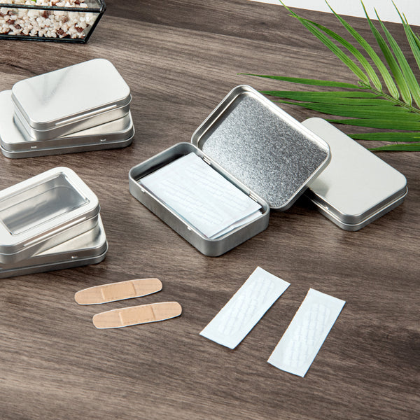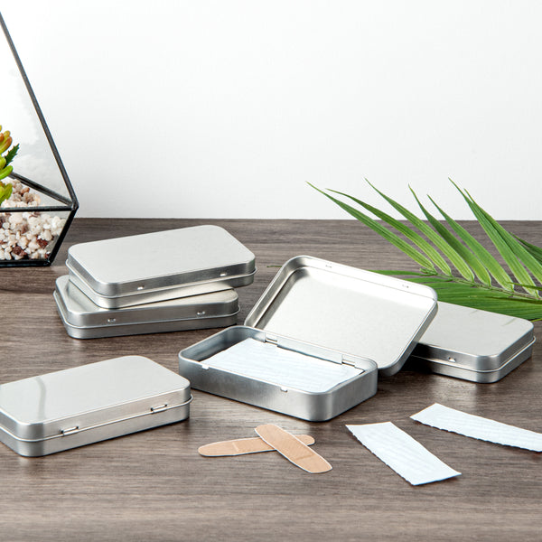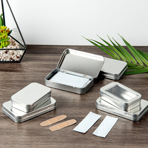 DIY a jewel box for your travel using our Chef 101 6-ounce Rectangle Silver Tin Containers. The premium construction of these tin storage containers with lids allows them to withstand rigorous use. To secure the contents inside during transit, these tin storage boxes come with tight-fitting hinged lids, avoiding any accidental dropping of the lids. Manufactured to provide a comfortable hold, these tin boxes with hinged lids have rounded corners, avoiding any damage to your hands. To let you carry them everywhere, these storage tin containers are lightweight and have a compact design. With a plain silver surface, these storage tins with lids let you label them for identification or customize them with stickers or ribbons. These rectangular containers for storage measure 4.5 inches in length by 2.75 inches in width each and holds up to 6 ounces. Sold in a 10 count box.