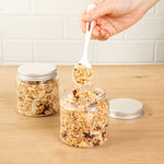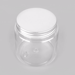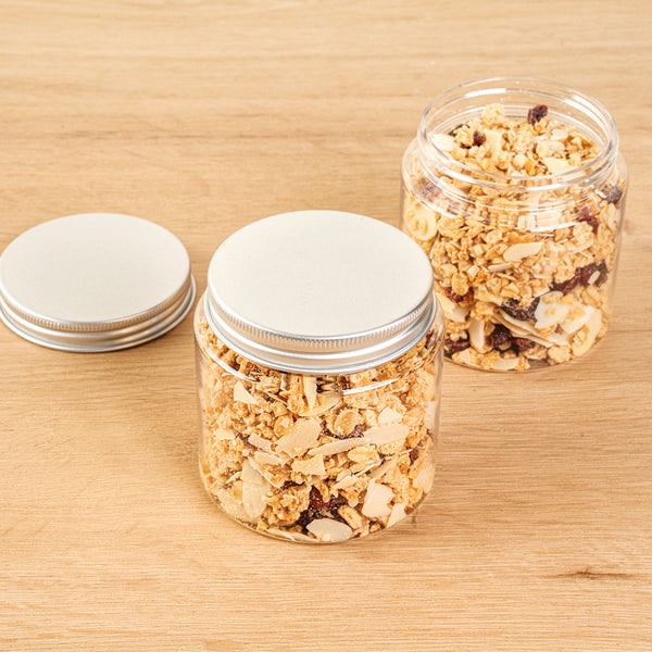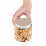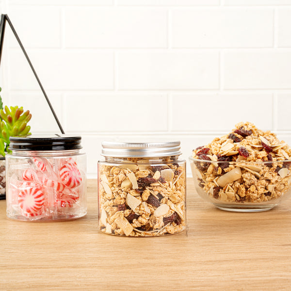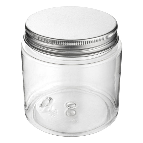 8 OZ CLEAR PLASTIC CANDY AND SNACK JAR - WITH SILVER ALUMINUM LID