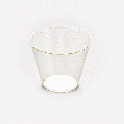 9 OZ GOLD GLITTER PLASTIC TUMBLER