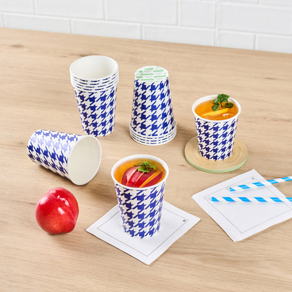 9 OZ ROUND BLUE HOUNDSTOOTH PAPER COLD CUP