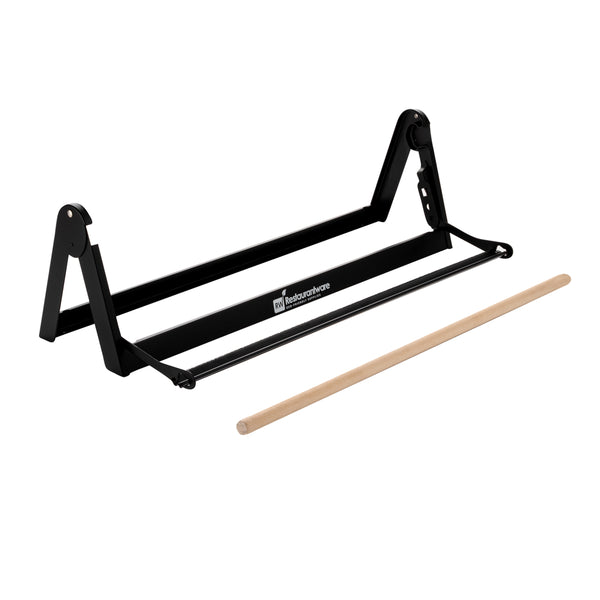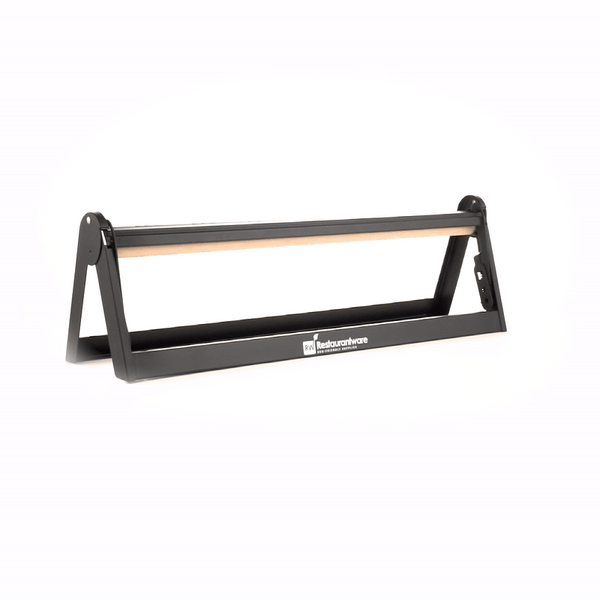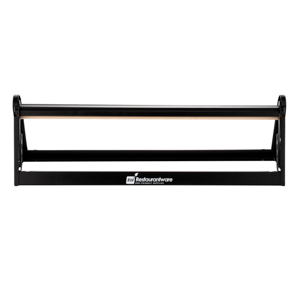 Easily cut paper with one hand using our Chef 101 Black Steel Paper Cutter / Dispenser. Made from black steel, this paper roll cutter is heavy-duty to handle difficult tasks. Featuring a serrated blade, this paper roll cutter cuts various packaging materials to wrap your food production in- such as paper and foil. Combine this dispenser with our matching butcher paper roll to have them within reach when wrapping up meats (search: RWA1115). The fixed bar in this roll holder is a cutter to ensure you get a smooth, clean cut every time. With a versatile build, this roll paper holder is easy to hang and can be mounted over or under a counter, even the wall for simple access. To keep your roll holder in place, this butcher paper dispenser has rubber feet. This paper roll dispenser is ideal for 24 inch rolls and measures 26.2 inches in length by 6.7 inches in width by 7.9 inches in height. Sold in a 1 count box. Ships disassembled. Butcher paper is available and sold separately.