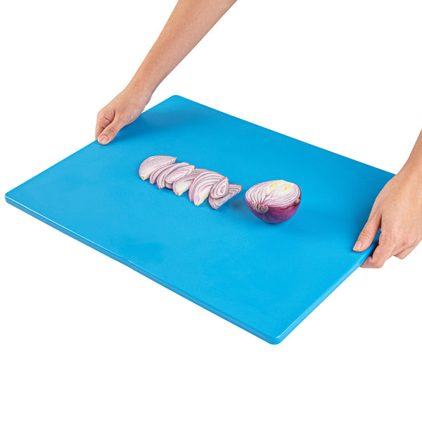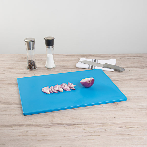 These color-coded cutting boards establish a system of assigning red to raw meats, green to fruits and vegetables, and yellow to poultry significantly increases cleanliness and enables the kitchen staff to quickly identify and use the correct board for each food type. These cutting boards come in different colors to comply with the HACCP standards.