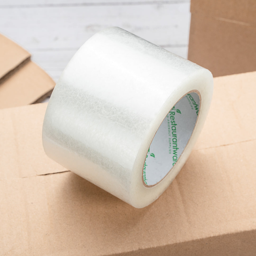Easily pack your glassware in boxes with our Chef 101 Clear Industrial Tape. Featuring a water-based adhesive, this packaging tape quickly and strongly sticks to surfaces to prevent boxes from reopening during transport. Perfect for packaging boxes of all sizes, this shipping tape measures 3 inches wide by 110 yards in length. Not to mention, this box tape is 2 millimeters thick so you can tear pieces of tape without any hassle. The clear finish of this transparent tape is designed to appear invisible when applied to surfaces for a clean and neat look. Made from BOPP film, this sealing tape is moisture-resistant so you can store sealed containers in the fridge. Pair this clear packing tape with our tape dispenser gun (SKU: RWT0983BL-1) to streamline your packaging process. Sold in a 1 count box. Tape dispenser gun is available and sold separately.