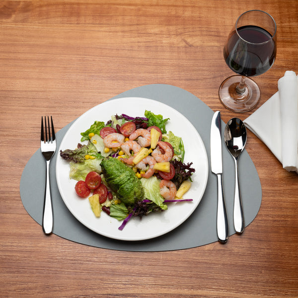 EGG-SHAPED GRAY VINYL PLACEMAT - EMBOSSED