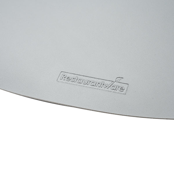 Effortlessly add flair to place settings using our Chef 101 Egg-Shaped Gray Vinyl Placemats. With an embossed pattern, these vinyl dining table mats appear as if they are made from leather to enhance the look of table settings at your cafe, restaurant, or catered event. These gray table mats are shaped like an egg to bring a one-of-a-kind look to tablescapes and add to the aesthetics of dining tables. Made from premium vinyl, these restaurant placemats are waterproof to prevent the condensation of glassware from leaking through placemats and staining tables. These non-slip placemats are designed to stay in place while guests are enjoying their meals to prevent messes. Each placemat can be conveniently hand washed or wiped down to reduce waste and minimize your establishment's carbon footprint. Each heat-resistant table mat measures 16 inches in length by 12 inches in width. Shipped in a 6 count box.