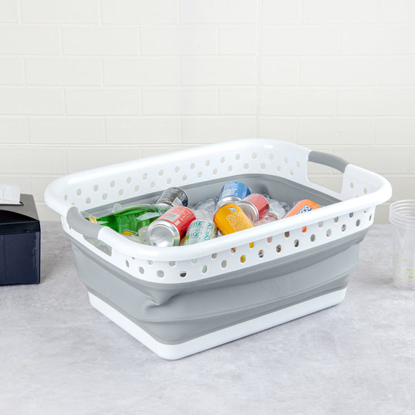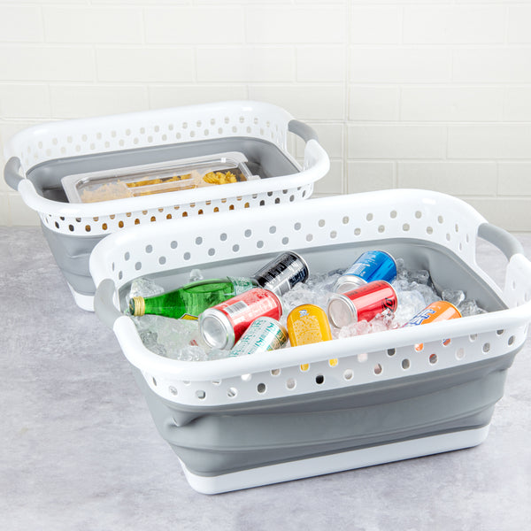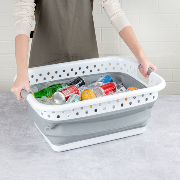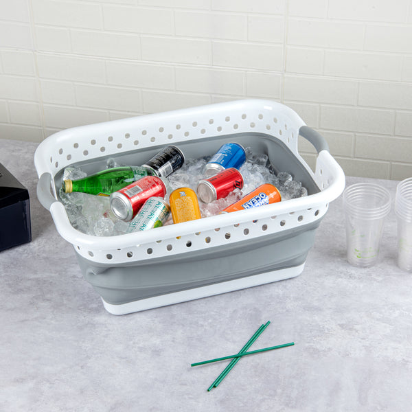 These collapsible storage containers feature built-in handles, allowing you to carry them with ease. Securely take cold drinks in your ice basket for guests to enjoy!