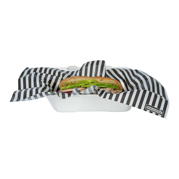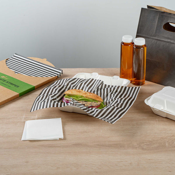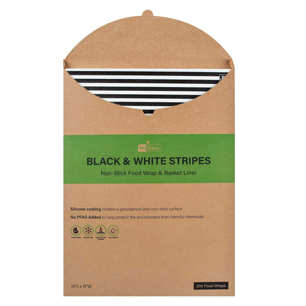 Chef 101 No PFAS Added Black and White Stripe Paper Food Wrap and Basket Liner - Greaseproof, Compostable - 15