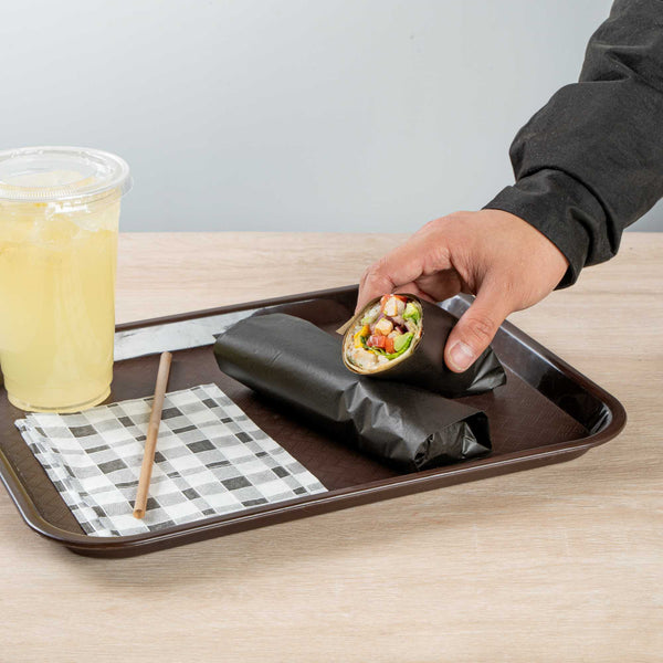 Elevate your food presentation with our Chef 101 No PFAS Added Black Papers Food Wrap and Basket Liners. These food wraps are constructed with premium paper, no PFAS Added, and are commercially compostable. Created with a greaseproof silicone coating, these taco paper wraps ensure no unwanted grease seeps onto your customers' hands or surfaces. Showcasing a classy black finish, these deli papers provide an upscale touch to your meals and are ideal for any occasion. These sandwich wrap papers are remarkably versatile, being freezable, allowing you to prep meals ahead of time. With their disposable nature, these recyclable basket liners make post-meal cleanup a breeze. Precut to a size of 15 inches by 11 inches, these wraps for food offer ample space to comfortably wrap up your delectable dishes. Sold in a 2,000 count box.