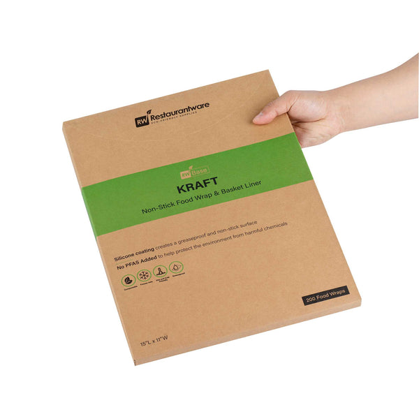 Craft the perfect food presentation with our Chef 101 No PFAS Added Kraft Paper Food Wraps and Basket Liners. These food wraps bring durability and reliability to your food service, made with sturdy kraft paper and no added PFAS for a secure, more sustainable option. With a greaseproof silicone coating, these taco paper wraps stop oils and sauces from seeping through, keeping your hands clean and your presentation pristine. Flaunting a neutral kraft finish, these food tray liners seamlessly blend with any food establishment theme or setup. Freeze your food without worry, as these sandwich wrap papers are freezable for versatility in food handling. When it's time to clean up, simply dispose of these basket liners, as they are reprocessable. These precut deli papers measure 15 inches in length by 11 inches in width, providing ample coverage for an array of dishes. Sold in a 2,000 count box.