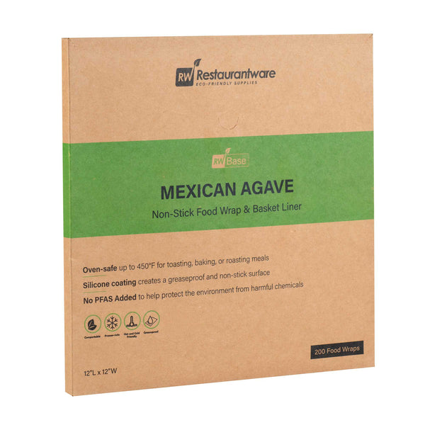 Enjoy delicious wraps in a convenient way using our Chef 101 No PFAS Added Kraft Paper Food Wrap and Basket Liners. Manufactured using premium kraft paper, these durable food tray liners have no PFAS added to them, allowing them to have a lower impact on the environment. With a Mexican agave plant design, these food wraps let your rolls stand out from other products. Constructed with a silicone coating, these greaseproof sandwich wrap papers do not let oily or saucy substances seep through them for a comfortable eating experience. For your convenience, these deli papers are freezable too. These disposable taco wrap liners are suitable for quick-service restaurants or food trucks. Each of these precut basket liners measures 12 inches in length by 12 inches in width. Sold in a 2,000 count box.