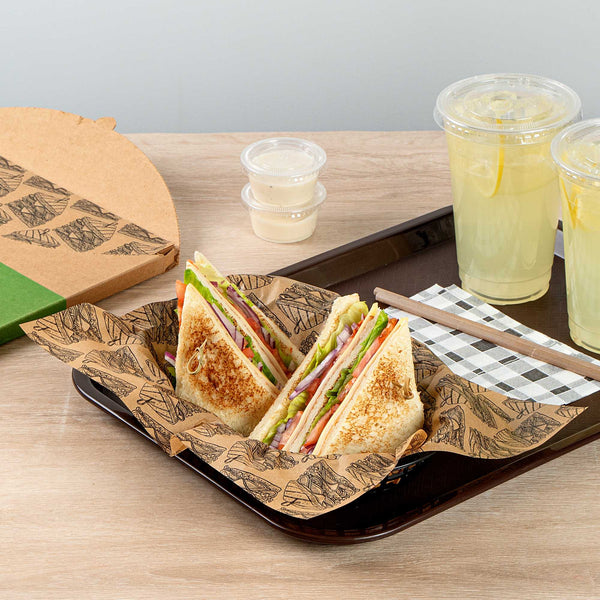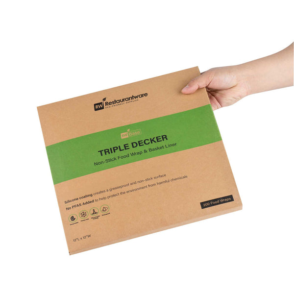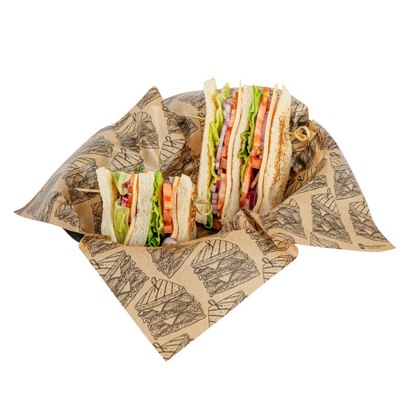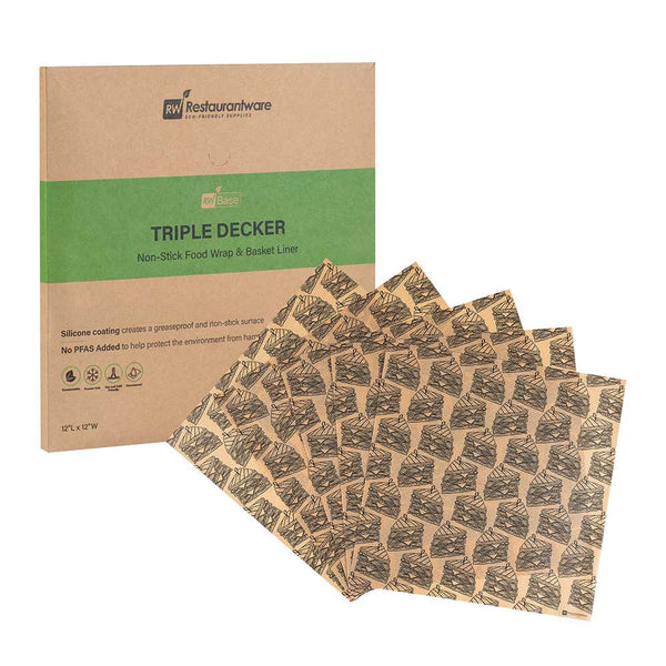 Protect your sandwiches from grease with stylish sophistication. The Chef 101 No PFAS Added Kraft Paper Sandwich Wrap and Fry Basket Liner, made from 12-inch by 12-inch PFAS-free paper, offers a sustainable alternative while maintaining the integrity of your delicious creations. This kraft sandwich wrap not only shields your sandwiches from oily leaks but also complements your food presentation with a unique print, enhancing visual appeal. Its greaseproof nature ensures that burgers, sandwiches, and wraps remain appetizing and mess-free, making it an ideal choice for deli operators seeking reliable greaseproof deli paper. The wrap’s recyclable paper construction supports eco-friendly practices, aligning with the growing demand for sustainable foodservice solutions. Elevate your presentation and protect your food with this burger wrap paper, delivering both functionality and style. Sold in a 2000 count box.