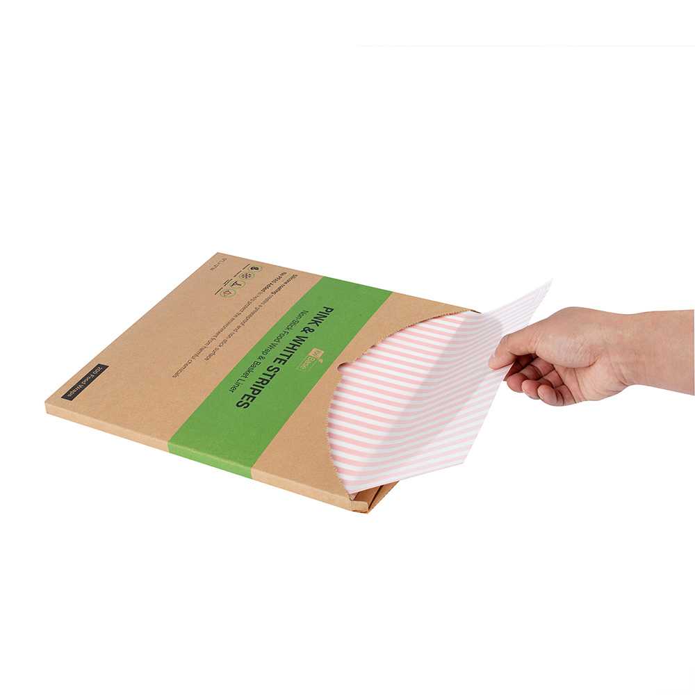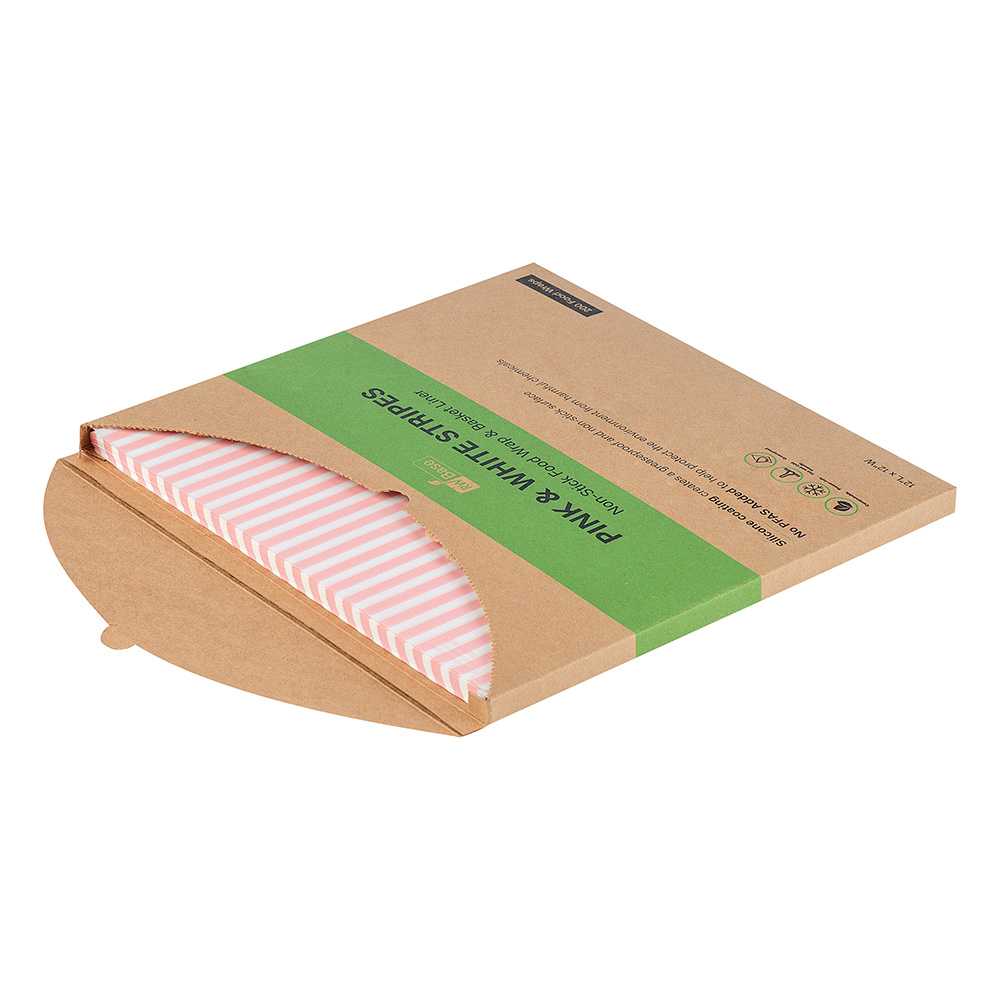 NO PFAS ADDED PINK AND WHITE PAPER BAKERY WRAP AND BASKET LINER