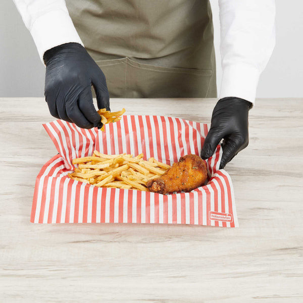 NO PFAS ADDED RED AND WHITE PAPER BAKERY WRAP AND BASKET LINER