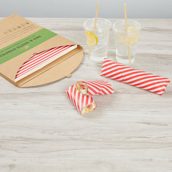 NO PFAS ADDED RED AND WHITE PAPER FOOD WRAP AND BASKET LINER