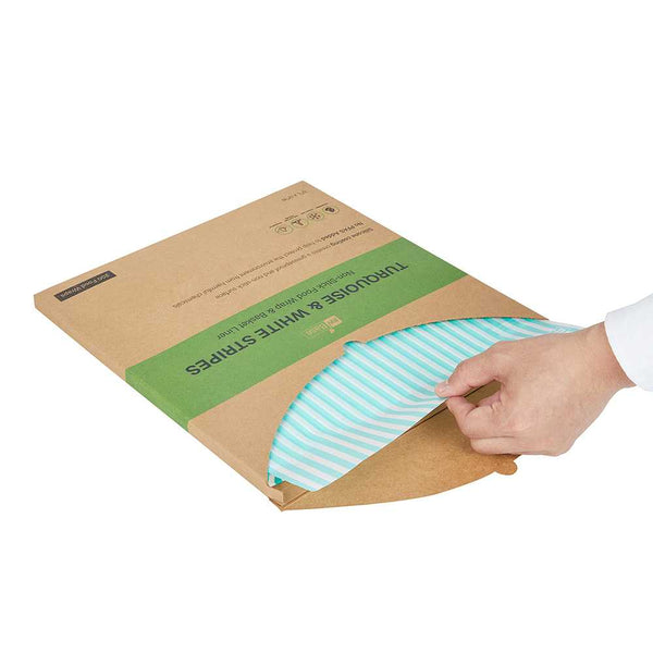 NO PFAS ADDED TURQUOISE AND WHITE PAPER BAKERY WRAP AND BASKET LINER