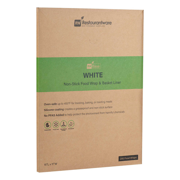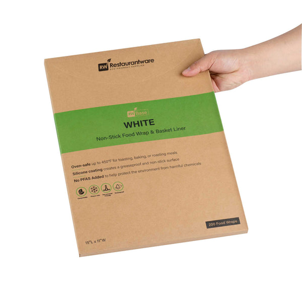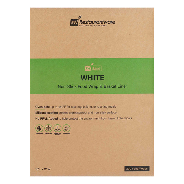 Present your meals in an elegant way with our Chef 101 No PFAS Added White Paper Food Wraps and Basket Liners. These food wraps, made with durable paper, are commercially compostable for your foodservice needs. With a greaseproof silicone coating, these taco paper wraps avoid oil and sauces from seeping through, keeping your customers' hands clean. Showcasing a white finish, these sandwich wrap papers enhance the presentation of your dishes, accentuating their appeal. Notably, these food tray liners are freezable, making them a versatile packaging solution for a wide range of food items. Conveniently disposable, these basket liners provide a no-hassle cleanup after use, saving you time and effort. Plus, these deli papers are recyclable, reducing waste and promoting sustainability. With their precut design, these food wraps ensure consistent sizing for your dishes, maintaining a professional and attractive presentation. With a generous size of 15 inches in length by 11 inches in width, these sandwich wrap papers generously accommodate your delicious wraps, sandwiches, tacos, and more. Sold in a 200 count box.