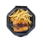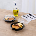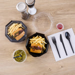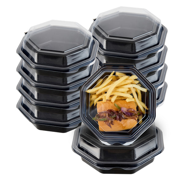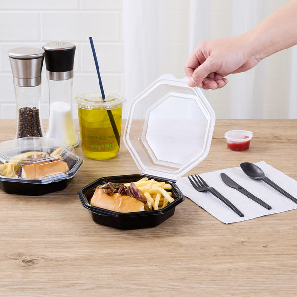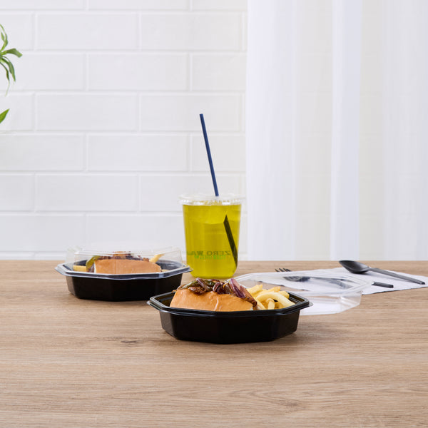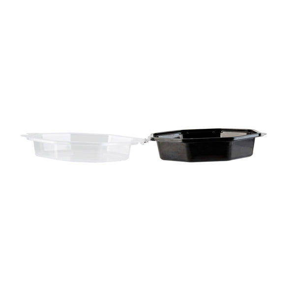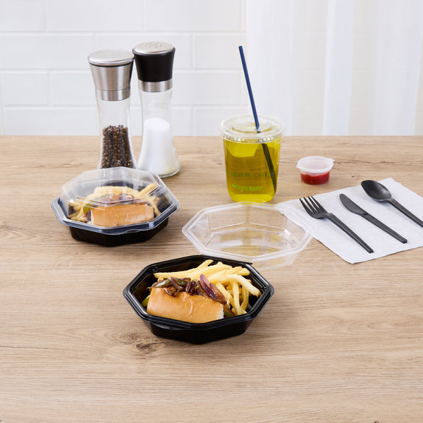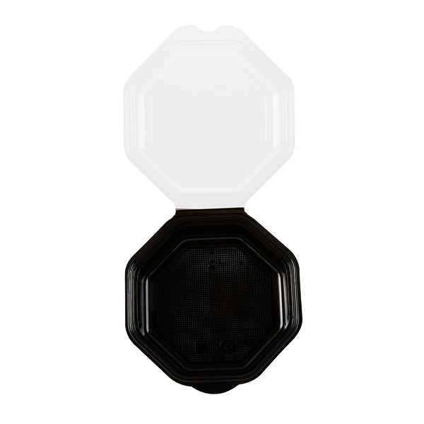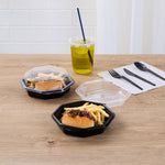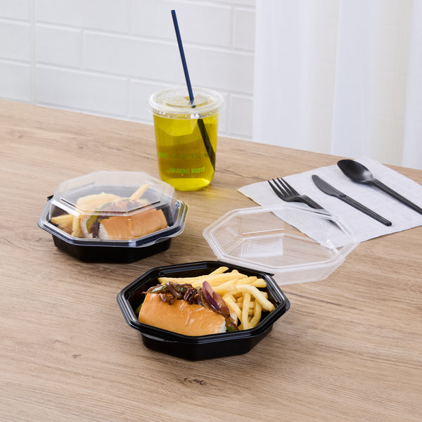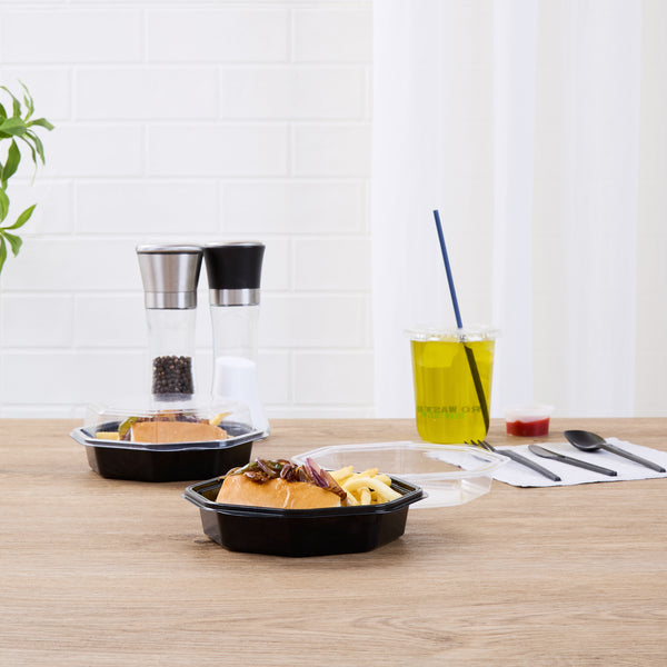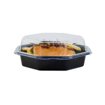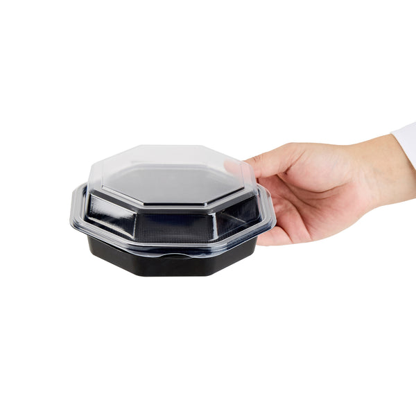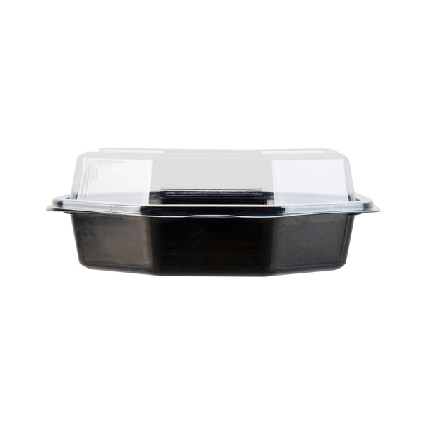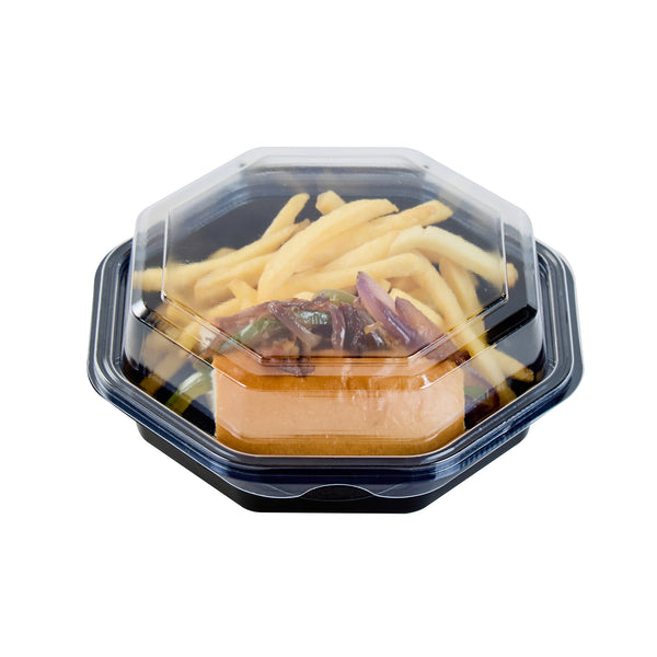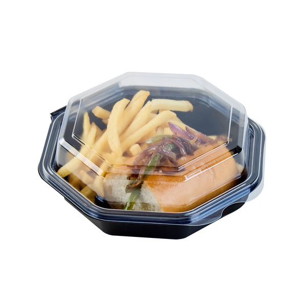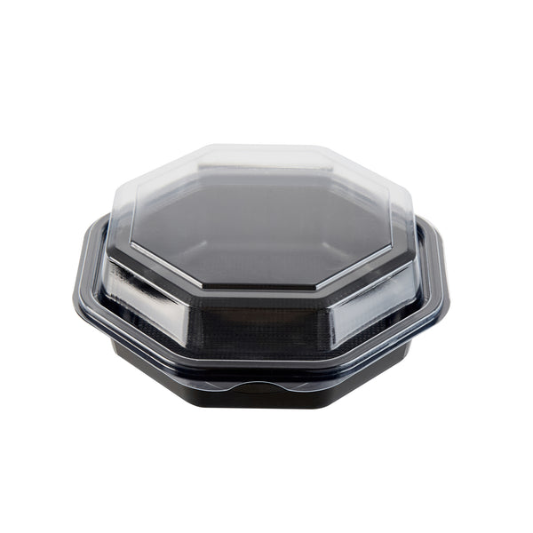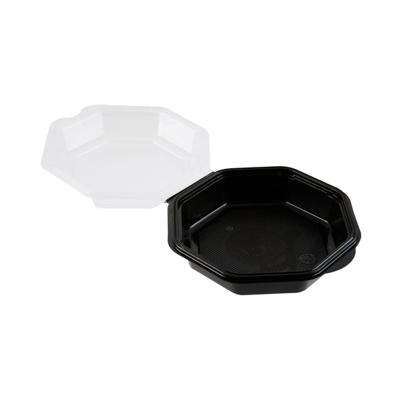 OCTAGON BLACK PLASTIC FOOD CONTAINER - WITH CLEAR LID