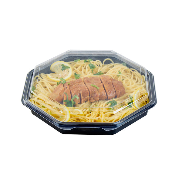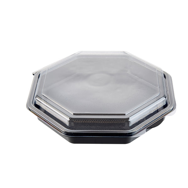 OCTAGON BLACK PLASTIC FOOD CONTAINER - WITH CLEAR LID