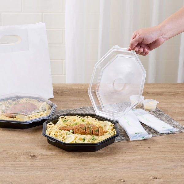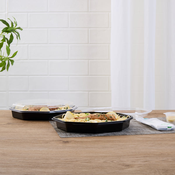 Chef 101 Octagon Black Plastic Food Container - with Clear Lid - 9
