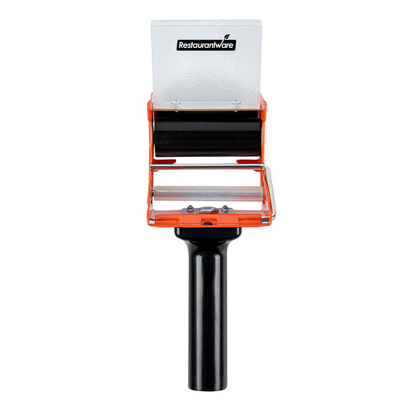 Refine your packing routine with our Chef 101 Orange Heavy-Duty Tape Dispenser Gun. Equip yourself with a durable rubber handle and an intuitively designed pistol grip. This iron tape dispenser assures a consistent hold, mitigating the strain during consistent use. Equipped with a 3-inch maximum tape width capability, a loading mechanism, and a smoothing roller, this packaging tape dispenser streamlines your package sealing endeavors, promising a smooth and accurate cut every single time. Personalize your packaging approach with the customizable tension knob on this tape gun, allowing all-encompassing control over your seal tautness. Sporting convenient dimensions of 10.25 inches in length by 3.5 inches in width by 4.25 inches in height, this dynamic orange handheld tape dispenser delivers efficient storage without compromising on style. Sold in a 1 count box.