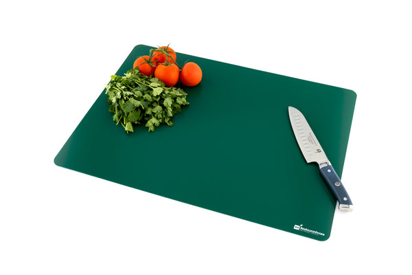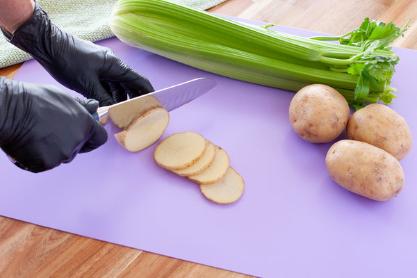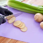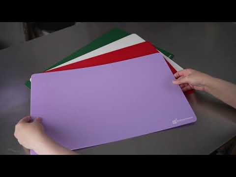 Easily follow food safety guidelines and prevent cross-contamination with our Chef 101 Rectangle Assorted Plastic Flexible Cutting Board / Chopping Mat Set. This color-coded chopping board set includes 4 mats to keep your commercial kitchen organized and prevent harmful bacterias from transferring to other foods. Each cutting board is made for particular food products: red is for raw meat, green is for fruits and vegetables, white is for dairy and bakery products, and purple is for allergen-free products. With a flexible design, this chopping mat set conveniently bends to provide your employees with an easy way to place ingredients into pots or bowls. This flexible cutting board set is crafted from premium plastic to withstand commercial dishwasher use and prevent sharp knives from cutting through boards. Neatly organize your mats with our cutting board holder that features 6 slots (SKU: RWT0635B) for efficient storage at your deli, restaurant, buffet, or other foodservice establishments. This cutting board set measures 24 inches in length and 18 inches in width and includes 4 mats per order. Cutting mat organizers are available and sold separately.