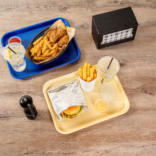 The wide surface of these fast food trays provides ample space, allowing customers to conveniently carry multiple items such as drinks, burgers, fries, and condiments all at once. Make it easy for customers to enjoy their meals.