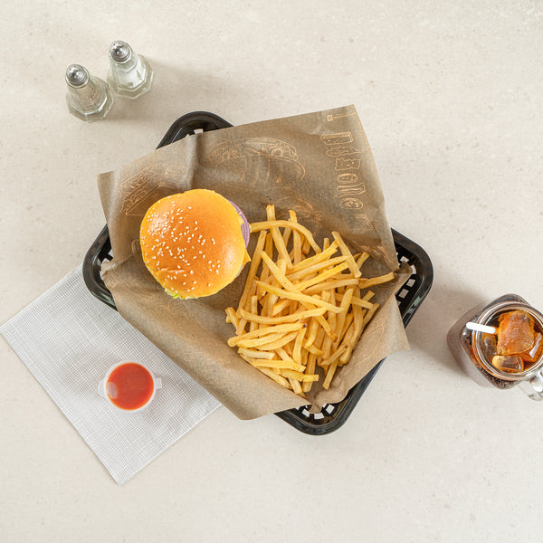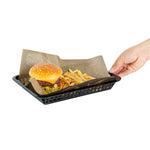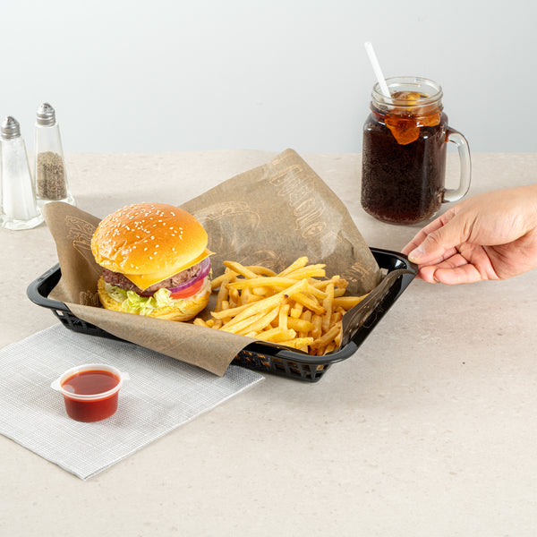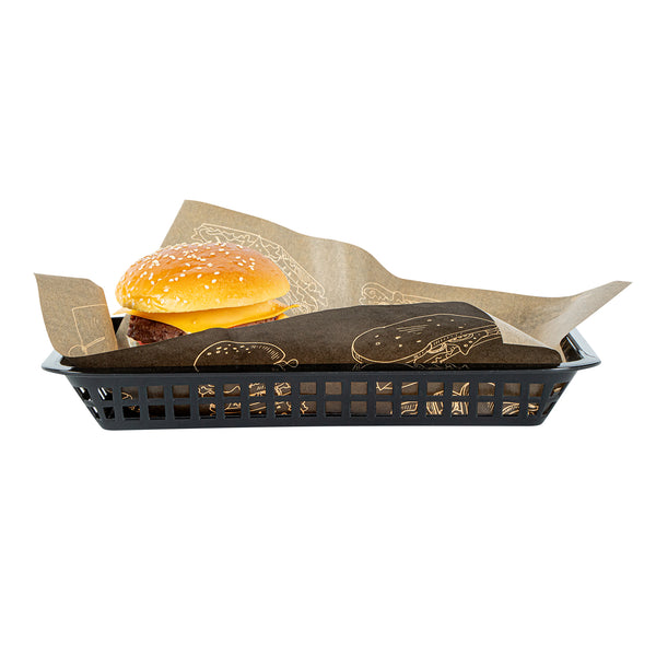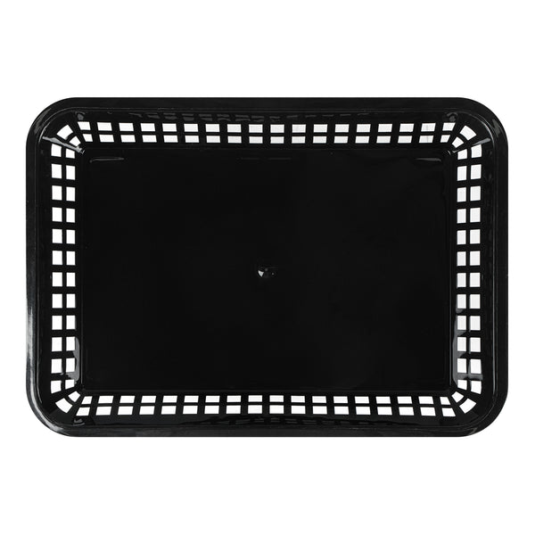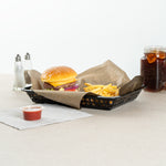Elevate your dining experience with our Chef 101 Rectangle Black Plastic Fast Food Serving Baskets. Lightweight and easy to transport, these food baskets are apt for serving fried foods, wings, or appetizers, making them a must-have for any bustling eatery. With their ability to be used in the microwave, these snack trays allow for quick reheating, enhancing convenience. Effortless cleanup is ensured as these fry baskets are compatible with dishwashers, saving valuable time in busy kitchens. Their stackable design ensures space-saving storage and easy portability, keeping your service area organized with these versatile plastic serving baskets. Pair with deli papers (SKU: RWA1261, RWA1259, RWA1256) to elevate the look and efficiently catch crumbs or grease while enhancing these snack trays' style and functionality. Measuring 11.81 inches in length by 8.47 inches in width by 1.38 inches in height, these food baskets provide ample space for generous portions. Sold in a 10 count box.