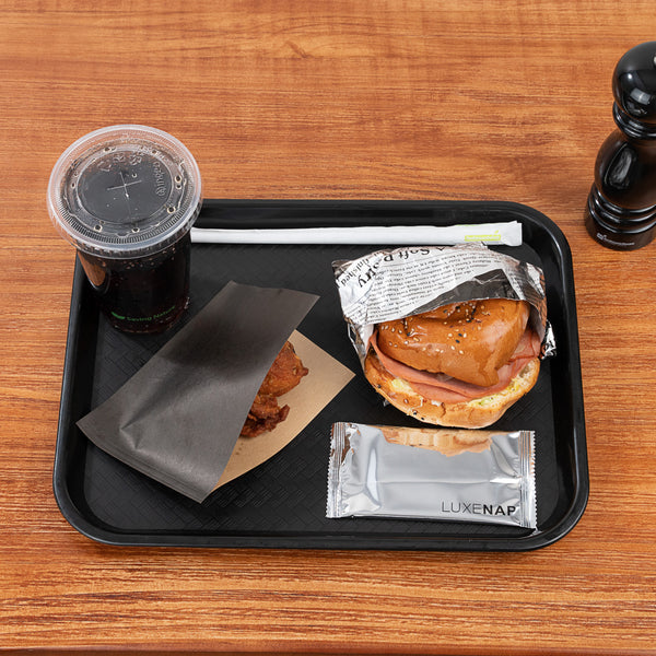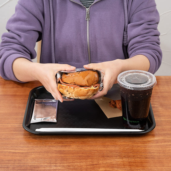 The wide surface of these fast food trays provides ample space, allowing customers to conveniently carry multiple items such as drinks, burgers, fries, and condiments all at once. Make it easy for customers to enjoy their meals.