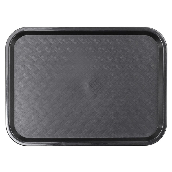 Streamline your meal service with our Chef 101 Rectangle Black Plastic Fast Food Trays. Constructed with a skid-resistant surface, these restaurant trays help keep dishes and beverages stable while being transported across busy dining areas. Their rectangular shape accommodates large meal portions along with utensils and cups, making them ideal for food courts, cafeterias, and quick-service operations. The raised edge design offers enhanced grip and handling for smooth delivery to tables. Crafted from high-quality plastic, these food trays feature an easy-to-clean surface and are dishwasher-safe to ensure hassle-free maintenance during peak hours. The neutral black finish seamlessly integrates with most restaurant decors, while their stackable design saves space in back-of-house storage. Each plastic tray measures 12 inches in length by 16 inches in width. Sold in a 50 count box.