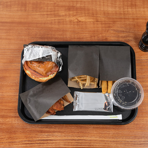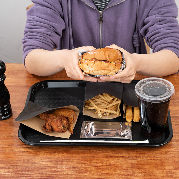 The wide surface of these fast food trays provides ample space, allowing customers to conveniently carry multiple items such as drinks, burgers, fries, and condiments all at once. Make it easy for customers to enjoy their meals.