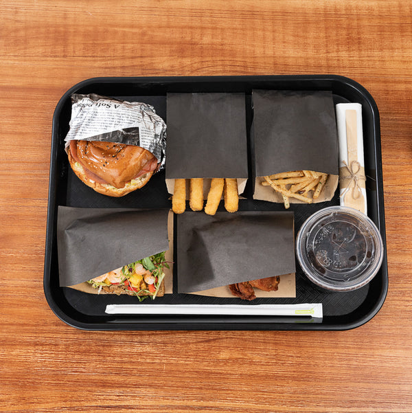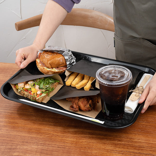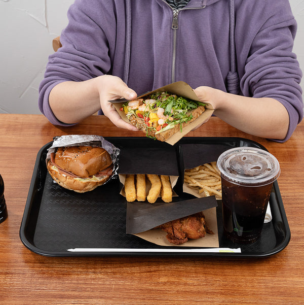 The wide surface of these fast food trays provides ample space, allowing customers to conveniently carry multiple items such as drinks, burgers, fries, and condiments all at once. Make it easy for customers to enjoy their meals.