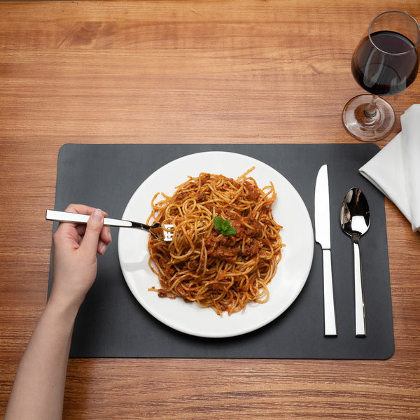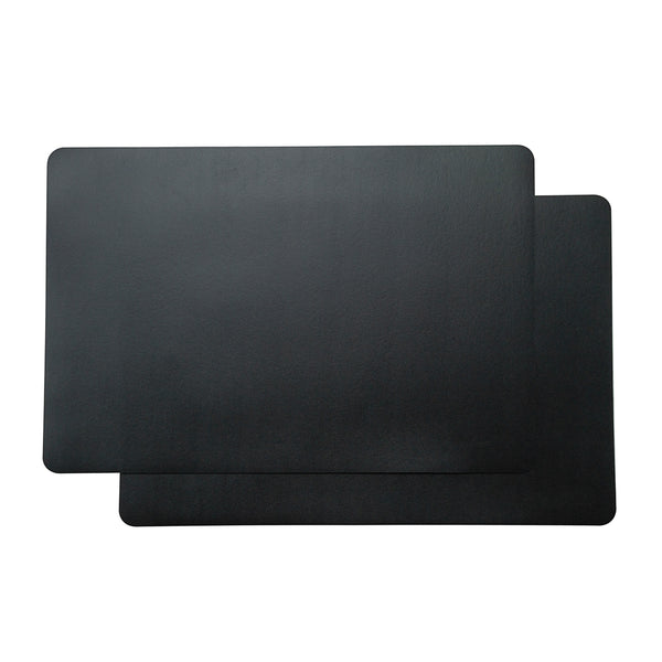 Set elegant tables with our Chef 101 Rectangle Black Vinyl Placemats. Featuring an embossed design, these restaurant placemats are made to look like leather while adding texture to your place settings. Made from high-quality vinyl, these nice placemats are heat-resistant to keep surfaces safe from hot dishes and beverages. For a simple cleaning process, these heat-resistant placemats are waterproof and can easily be wiped clean with a damp cloth. These vinyl placemats are non-slip to keep meals and drinks securely in place and avoid accidental spills. The black finish and rectangle shape of these rectangle placemats elegantly frame your dishes and complement any type of dishware. These dining room placemats measure 17.7 inches long by 12 inches wide. Sold in a 6 count box.