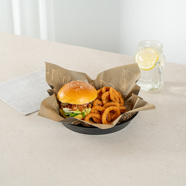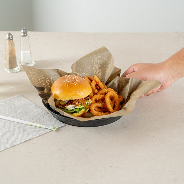 Our Chef 101 Round Black Plastic Diner Platters are the seamless solution for serving a variety of foods with style and ease. Made from durable plastic, these lightweight serving trays are apt for presenting fried foods, wings, sandwiches, or appetizers in any dining setting. Built-in drain holes on these reusable platters facilitate post-wash drying, effectively stopping water pooling and ensuring cleanliness. The microwave-secure construction of these diner platters allows for quick reheating, making them a convenient choice for busy kitchens. Designed for effortless cleanup, these plastic platters are suitable for dishwashers, saving you valuable time and effort. Stackable for space-saving storage, these serving trays also offer easy portability, catering to busy foodservice settings. Measuring 8.94 inches in diameter by 1.18 inches in height, these diner platters provide ample space to showcase your culinary creations. Sold in a 10 count box.