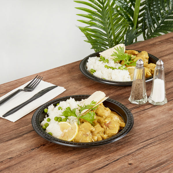 Chef 101 Round Black Plastic Plate - Microwavable - 9