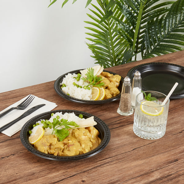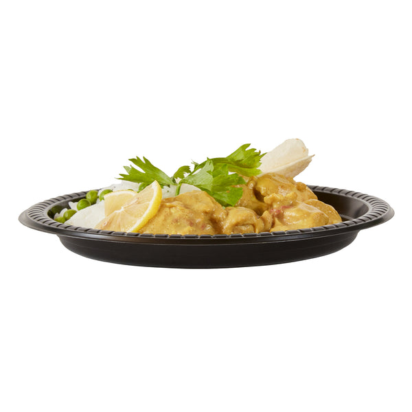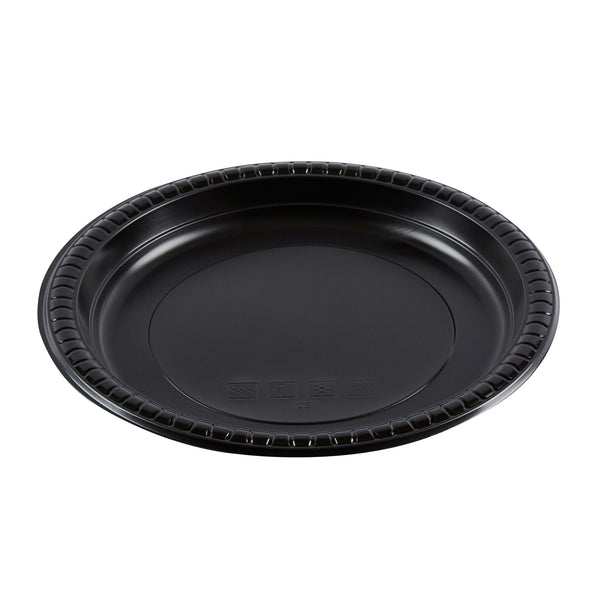 ROUND BLACK PLASTIC PLATE - MICROWAVABLE