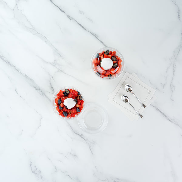 Use these clear lids with our collection of compatible RW Base dessert cups and ensure your desserts stay fresh and secure during transport with this perfect pairing. Disposable for easy cleanup!