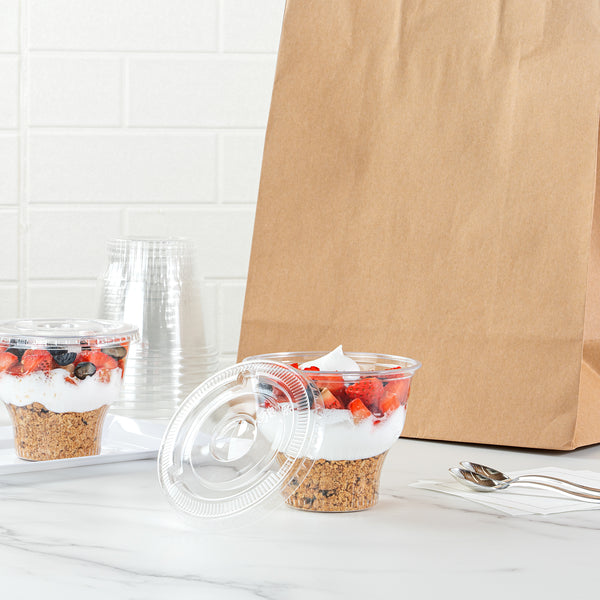Use these clear lids with our collection of compatible RW Base dessert cups and ensure your desserts stay fresh and secure during transport with this perfect pairing. Disposable for easy cleanup!
