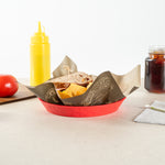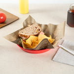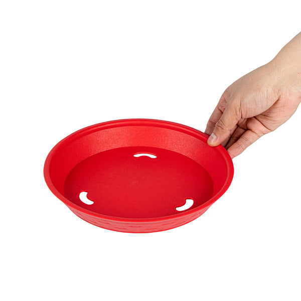 Elevate your food presentation with our Chef 101 Round Red Plastic Diner Platters, seamless for showcasing everything from fried foods to appetizers with style. These versatile food platters are made from durable plastic, providing a lightweight yet sturdy option for serving wings, sandwiches, and more. Featuring built-in drain holes, these serving trays ensure efficient post-wash drying by avoiding water pooling. With their microwave-secure construction, these reusable platters allow for quick reheating of meals without transferring to another dish. Their dishwasher-secure design offers a time-saving cleanup process, making these plastic platters apt for busy foodservice settings. Thanks to their stackable nature, these diner platters offer space-saving storage and easy portability, enhancing convenience in any kitchen setup. Measuring 8.94 inches in diameter by 1.18 inches in height, each platter is perfectly sized for various dishes. Sold in a 10 count box.