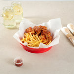 Our Chef 101 Round Red Plastic Diner Platters are the seamless solution for showcasing your culinary creations. Made from durable plastic, these reusable platters are lightweight, making them suitable for serving fried foods, wings, sandwiches, or appetizers with ease. With its elevated base, these food platters enhances meal presentation by adding height and visual appeal. Featuring built-in drain holes, these serving trays stop water pooling during post-wash drying, ensuring cleanliness and convenience. The microwave-secure construction of these diner platters allows for quick reheating. Designed to be suitable for dishwasher use, these plastic platters ensure effortless and time-saving cleanup after busy service hours. For space-saving storage and easy portability, these stackable platters are indispensable in the foodservice industry. Measuring 8.86 inches in diameter by 1.77 inches in height, these platters are perfectly sized for all your serving needs. Sold in a 10 count box.