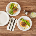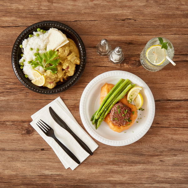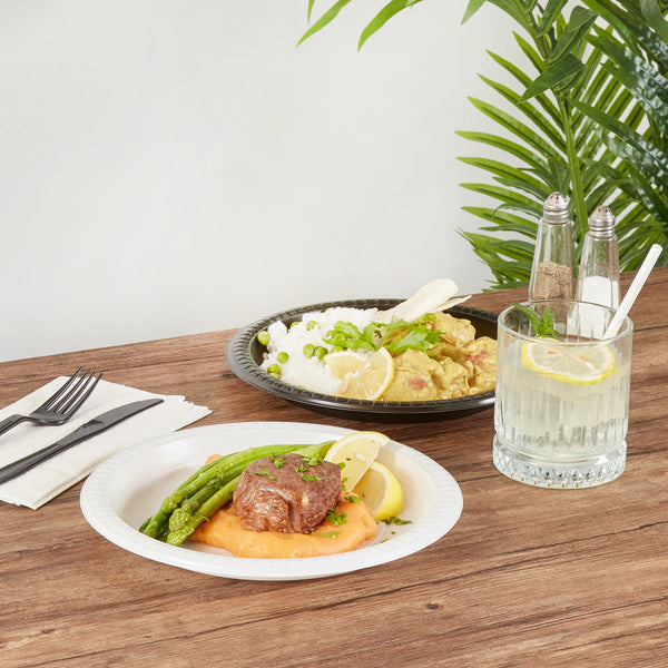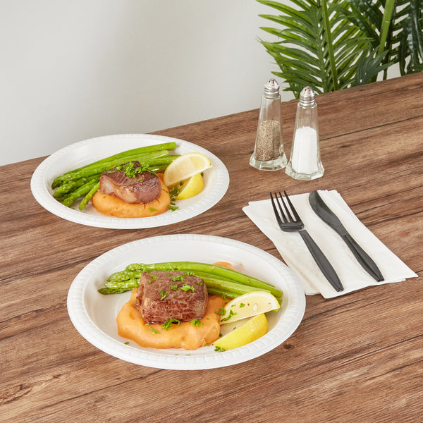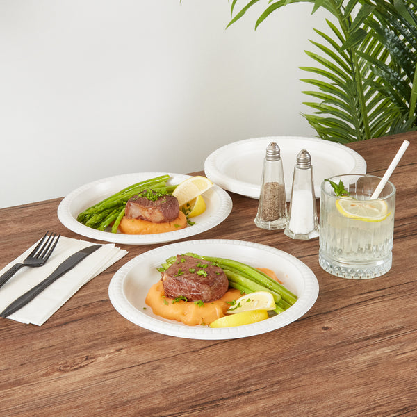 Elevate your dining experience with our Chef 101 Round White Plastic Plates. These plastic plates are microwave-safe and allow you to easily reheat your meals, ensuring that every dish is served at the perfect temperature. Made from premium plastic, these serving plates are suitable for both hot and cold food items, making them versatile for any type of cuisine. The white finish of these dinner plates accentuates your food presentation, making each dish visually appealing and enticing. To facilitate an easy cleaning experience, these disposable plates can be discarded after use, allowing your staff to focus on delivering exceptional service. These food plates are recyclable, offering an eco-friendly way to serve meals and reduce your carbon footprint. Measuring 9 inches in diameter, these white plates are perfectly sized for any meal. Sold in a 50 count box.
