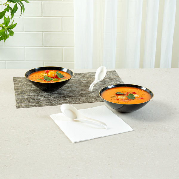 Elevate your dining experience with our Chef 101 White Plastic Asian Soup Spoons. Crafted from premium plastic, these Asian spoons are exceptionally durable and ideal for any foodservice setting. The reinforced handles of these Chinese soup spoons offer extra strength, making it easy to handle hefty bites of your favorite food. With the ability to withstand heat up to 200F, these Japanese soup spoons are ideal for serving hot, piping soups and meals. Featuring a sleek white finish, these plastic spoons add a stylish touch to your food presentation. Disposable and convenient, these Asian soup spoons can be discarded after use for an effortless cleanup. These white plastic spoons measure 6.5 inches in length by 1.7 inches in width by 3.2 inches in height. Sold in a 100 count box.