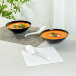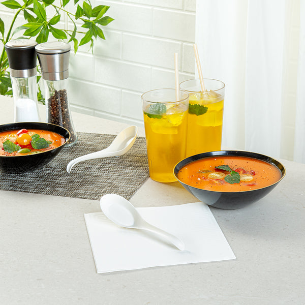Enhance your dining experience with ergonomic and reliable utensils. Chef 101 Plastic Asian Soup Spoon offers durable plastic construction, ensuring reliable use without breakage, perfect for high-volume service in bustling environments. This plastic Asian soup spoon features heat tolerance up to 200 degrees Fahrenheit, making it ideal for serving hot soups and stews in restaurants. With reinforced handles for extra strength, this disposable Chinese spoon is reliable for carrying heavy meals, reducing the risk of spills. Measuring 6.5 inches in length, this ramen soup spoon is the ideal size for serving soups and broths, providing appropriate portion control. The classic white color offers a clean and professional appearance, complementing various table settings. Elevate your service quality with this practical solution today. Each order includes 1000 Chef 101 Plastic Asian Soup Spoons.