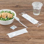 Chef 101 White Plastic Cutlery Set - with Napkin and Salt / Pepper Packets, Medium Weight, Wrapped - 6 1/2