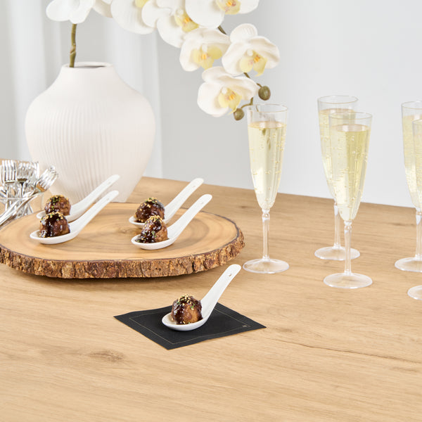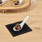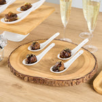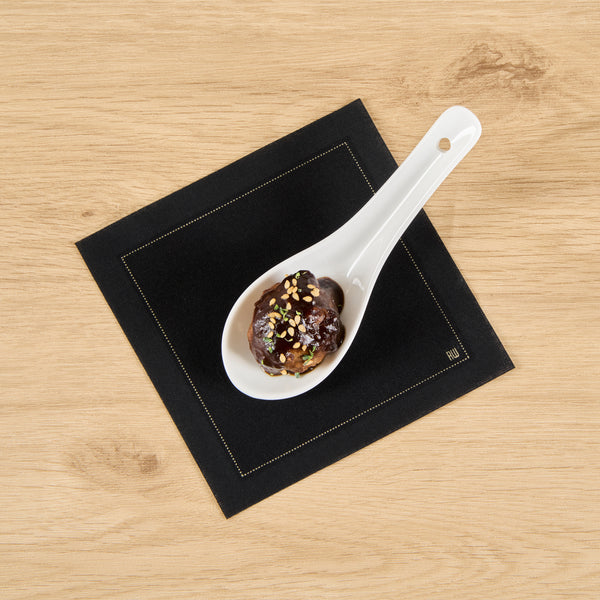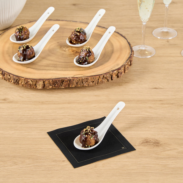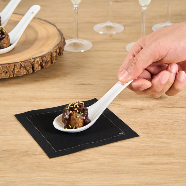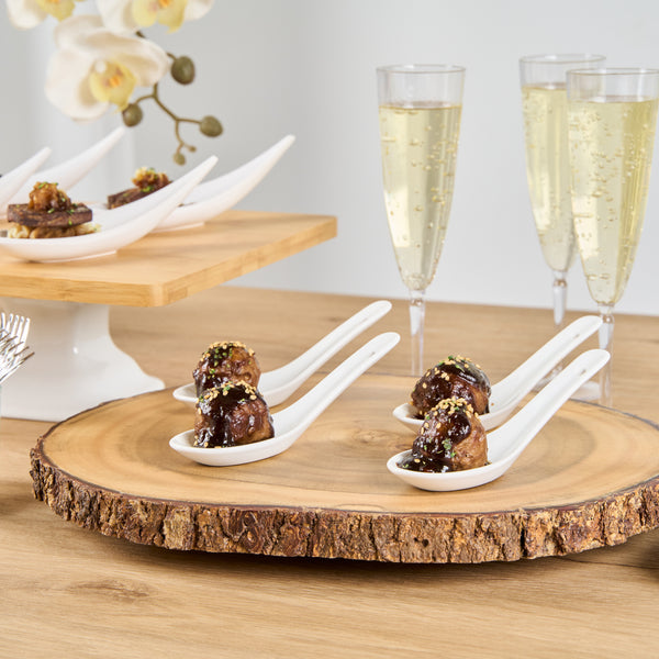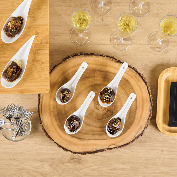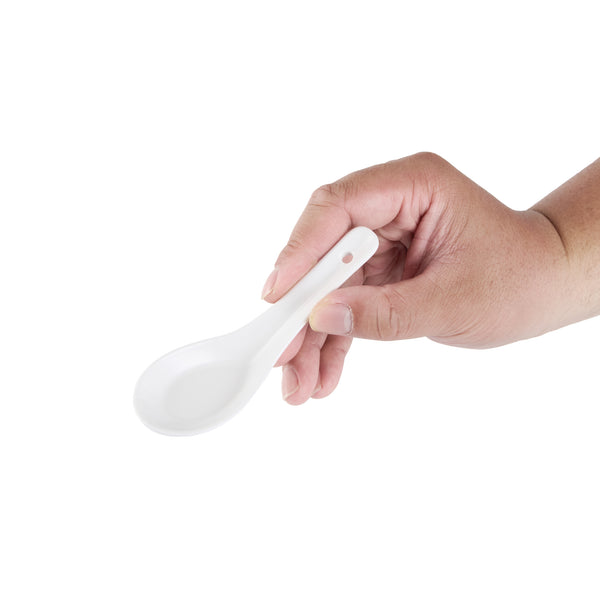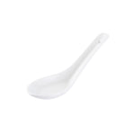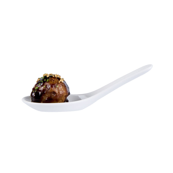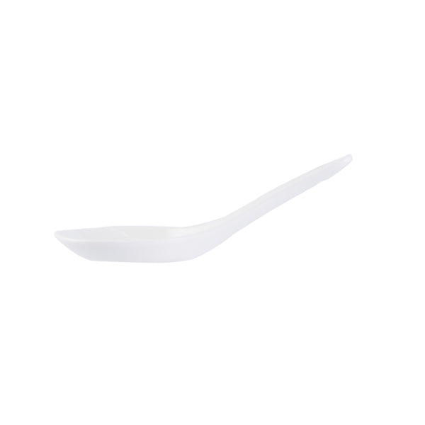 Serve your fare with simple elegance alongside these Chef 101 Porcelain Asian Spoons. Featuring an elongated basin and a flattened base, these porcelain soup spoons are ideal for enjoying Asian-inspired soups and broths -- or for serving bite-sized appetizers and miniature desserts! Their bright white finish provides a beautiful backdrop for your culinary creations, while their angled handle enables easy and mess-free service. Crafted from premium porcelain, these Asian soup spoons are designed to be long-lasting, chip-resistant, and dishwasher-safe. Whether you use them as miso soup spoons or appetizer spoons, your guests are sure to be impressed by their premium quality. Each of these 0.5-ounce porcelain spoons measures 4.9 inches in length. Sold in a 10 count box.