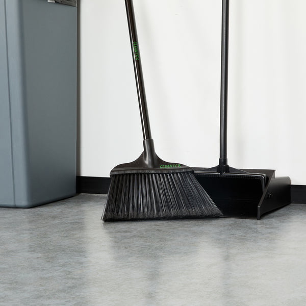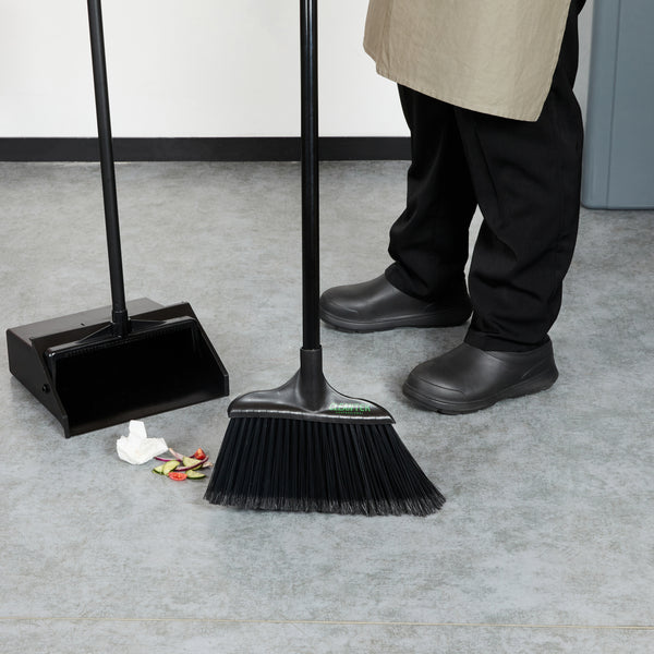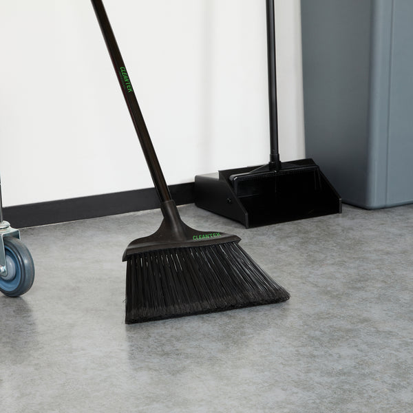 Effortlessly maintain cleanliness in your commercial space with our Clean Tek Profesional 13 3/4-inch Black Plastic Wide Angled Broom Head. Designed with a wide angled head, this push broom head allows for efficient sweeping of large areas while easily maneuvering around obstacles and corners. Pair this black broom head with compatible handle (SKU: RWT1883B) for an enhanced cleaning performance. This heavy-duty push broom head is equipped with flagged bristles that effectively capture fine dust and debris, ensuring a thorough clean on both smooth and textured surfaces. The plastic block of this broom head is crafted for durability and stability, securely holding the bristles and enhancing the broom's overall performance. Ideal for use in commercial and foodservice environments, this versatile dust broom head provides unmatched coverage and cleaning efficiency. Measuring 13.78 inches in length by 9.65 inches in width by 1.58 inches in height, this angled broom head is perfect for any heavy-duty cleaning task. Sold in a 1 count box. Handle is available and sold separately.